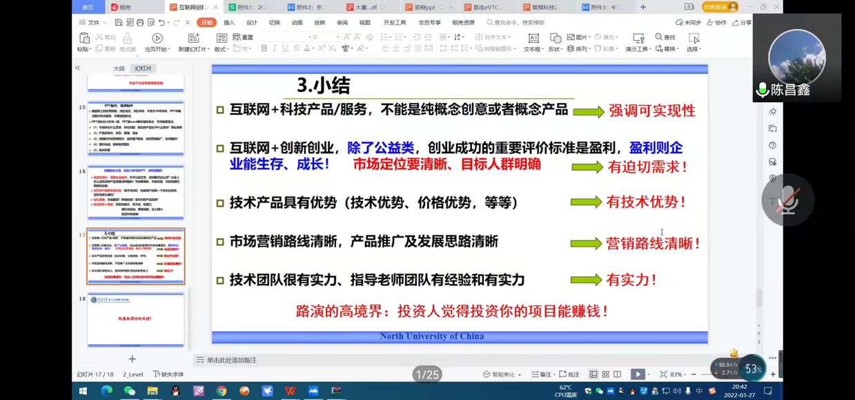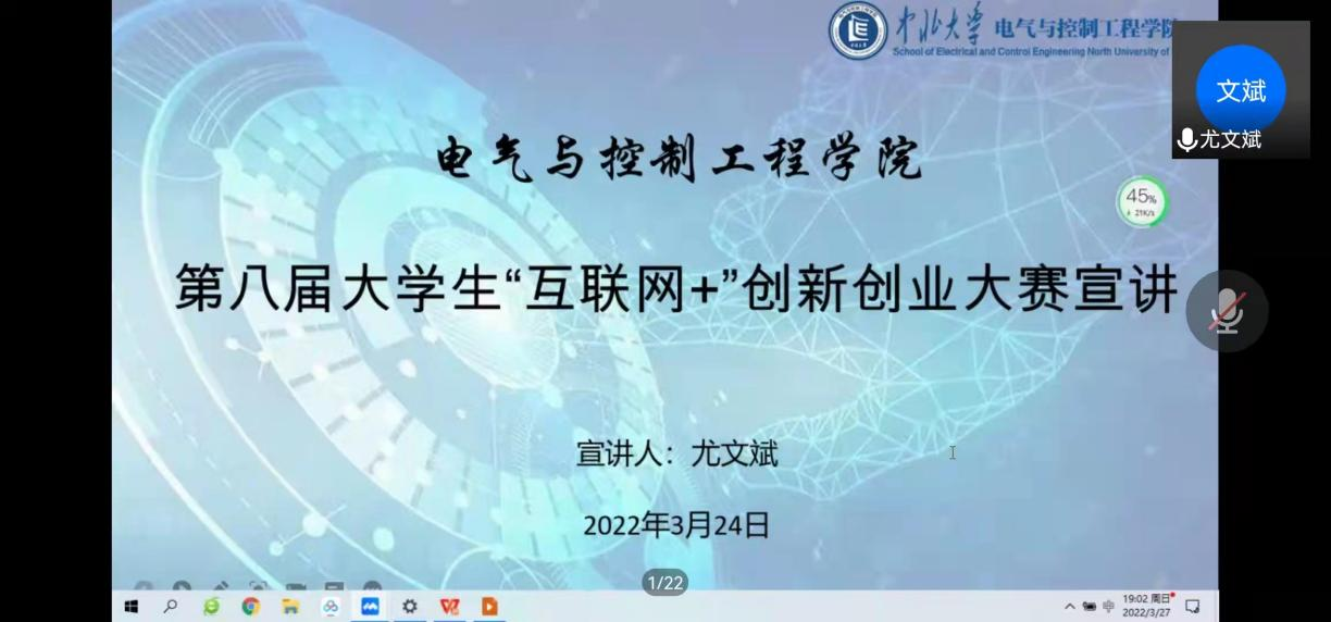 于2022年3月27日晚7:00在线上举办了第八届“互联网+”大学生创新创业大赛宣讲培训会。会议由李晓副院长主持,尤文斌和陈昌鑫两位老师担任主讲嘉宾,250余名师生参加会议。