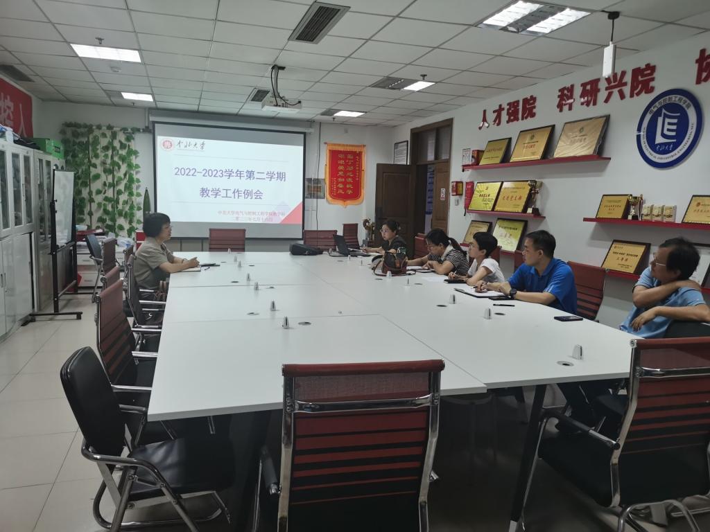 2023年7月16日上午人妻av 在619召开了学期末教学工作例会,会议由副院长李晓主持,各系主任及教学科成员出席会议。
