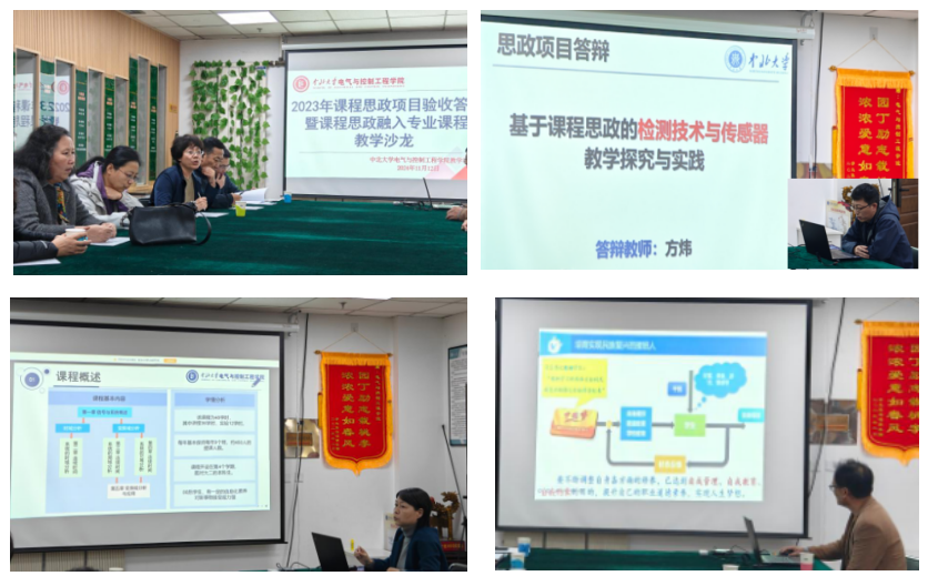随后,2023年校级课程思政立项的3位教师进行了思政结题汇报。他们结合自身的教学实践,分享了将课程思政融入专业课程的具体做法和经验。其中,方炜副教授详细阐述了如何在教学目标、课程内容、教学设计和教学评价等方面挖掘课程思政元素,并将其巧妙融入专业课程中。靳鸿教授从科学家精神、二十大精神、科学技术、哲学著作、文学作品几个方面深入阐述了思政元素的挖掘来源、对应知识点与呈现方式等;张艳兵副教授结合自动化专业特点,从系统的角度润物细无声地将思政元素与专业发展有效结合。最后与会教师就课程思政融入专业课程的具体实施路径、存在的问题和困惑进行了深入交流和探讨。