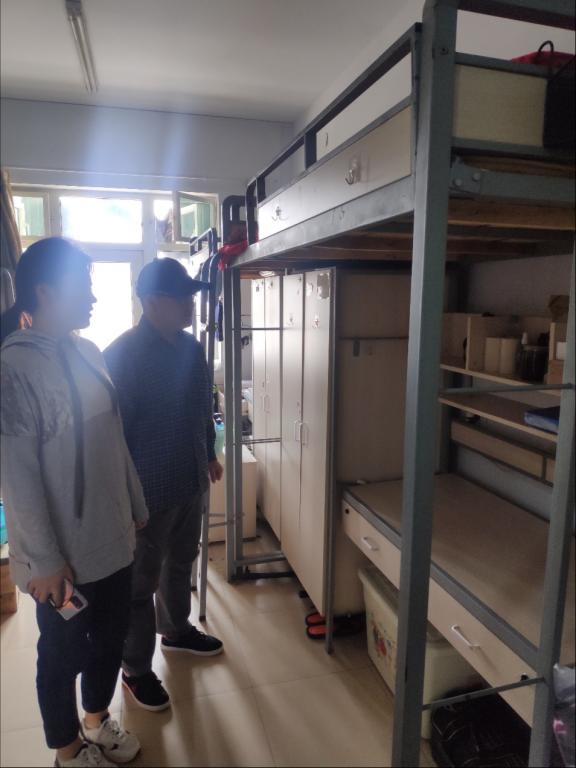 2020年9月25日,根据学院安全卫生工作会议精神,为进一步推进平安校园建设,创建全国文明城市,践行社会主义核心价值观,Y181501班班长李春雨、Y181502班班长权晓协同各班班委进行了新学期安全卫生互查工作。互查宿舍主要集中在研究生三年级所在的文瀛12号楼。