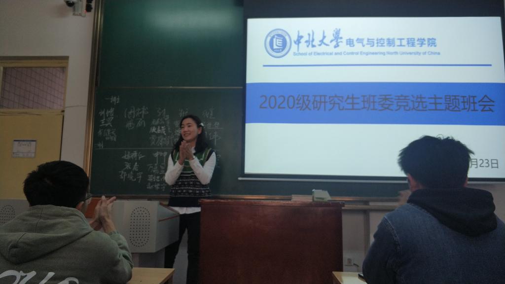 研究生辅导员李婷老师于10月23日下午2:30在11307H教室主持召开班委竞选主题班会。