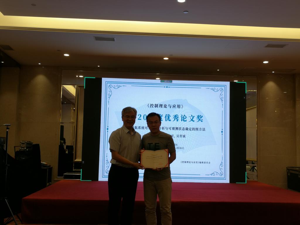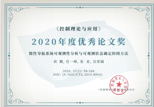 7月27日下午3点在CCC会场富悦大酒店召开期刊编委会颁发获奖证书仪式。人妻av 刘鹏博士为第一作者,任一峰教授为通信作者发表的论文《惯性导航系统可观测性分析与可观测状态确定的图方法》经专家组评审获得《控制理论与应用》2020年度优秀论文奖(已在控制理论与应用期刊网站公示)。原浙江大学党委常委、副校长,中控科技集团创始人,现任宁波工业互联网研究院院长褚健为人妻av 刘鹏老师颁奖。该奖项的获得表明人妻av 任一峰教授团队的工作获得国内同行的关注和好评。
