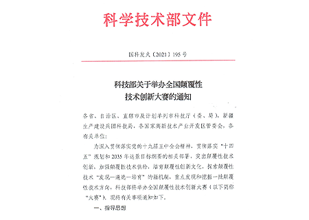 根据2021年7月14日科技部发布的《科技部关于举办全国颠覆性技术创新大赛的通知》,大赛以习近平新时代中国特色社会主义思想为指导,深入贯彻落实党中央、国务院重大决策部署和创新驱动发展战略,探索建立颠覆性技术发现和遴选的新机制,挖掘具有战略性、前瞻性的颠覆性技术方向,在全社会营造颠覆性技术创新的良好生态,带动我国原始创新能力和产业竞争力提升,为我国产业转型升级和经济高质量发展提供强大动力引擎。