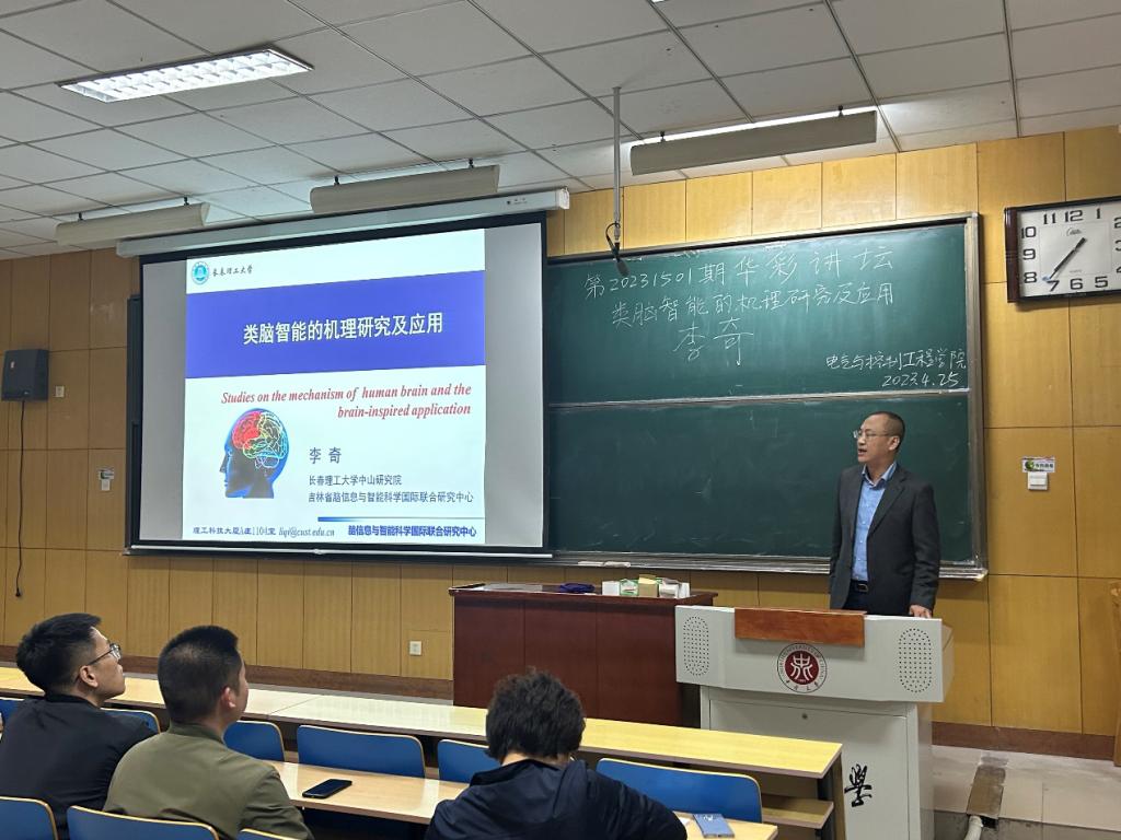 2023年4月25日19:30,人妻av 特邀长春理工大学中山研究院副院长、吉林省脑信息与智能科学国际联合研究中心主任、博士生导师李奇教授在11309H教室为广大研究生作题为《类脑智能的机理研究及应用》的学术讲座,讲座由人妻av 李晓副院长主持。