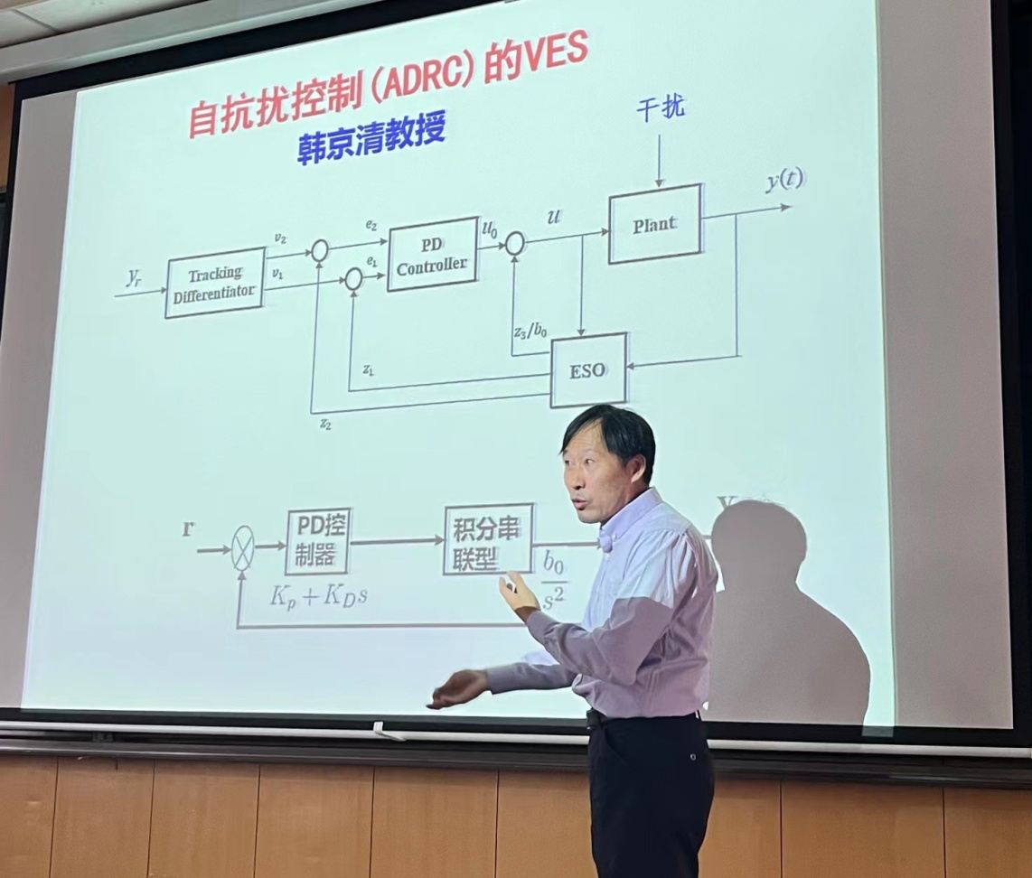 讲座伊始,张教授重点讲述了控制理论中不同控制策略如何看待和使用模型与误差,借助报告人建立的虚拟等价系统理论,可以直观解剖各种控制策略的思路与差异。接着,张教授讲述了在人工智能机器学习领域存在着非常类似的模型与误差问题,控制理论和人工智能机器学习互相渗透,互相借鉴,从方法论的角度来看,两者同种同源——都属于基于误差反馈的优化问题。