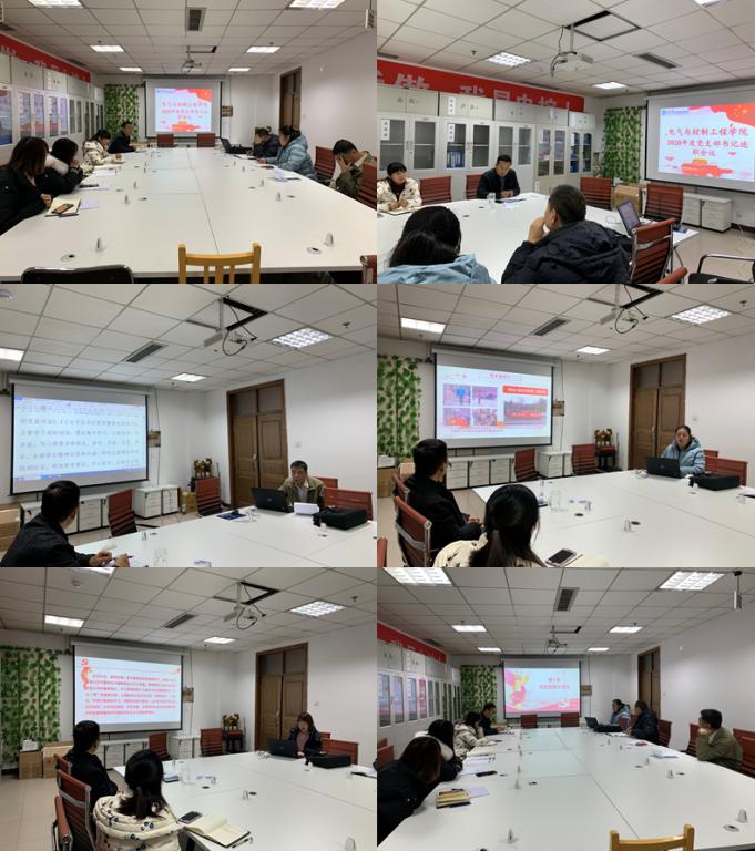 述职结束后,党委书记陈晔对党支部书记的述职进行了点评。他对各党支部一年来开展的工作以及取得的成绩给予了充分肯定:师生党员在工作学习中充分发挥了共产党员的先锋模范作用,各党支部结合支部实际开展了大量形式多样的学习活动、主题教育活动,支部活动各有特色;同时指出了存在的问题和不足:党建工作与学院中心工作相结合方面有待进一步提高。接下来陈书记对2021年党建工作提出了四点建议:一是支部书记要切实履行职责,进一步加强理论学习,把理论学习作为加强支部建设和提高党员队伍素质的一项基础工作;二是认真学习样板党支部的经验,各个支部要总结梳理、用心凝炼本支部的工作,形成特色,打造“一支部,一品牌”;三是严格落实“三会一课”制度,发挥基层党支部战斗堡垒作用和党员先锋模范作用,激励大家更好地为学校“双一流”建设贡献党员力量;四是充分调动支部党员的积极性,全力做好支部党建工作,推进学院党建工作“五化”建设,以党建引领推动学院各项工作提质增效。