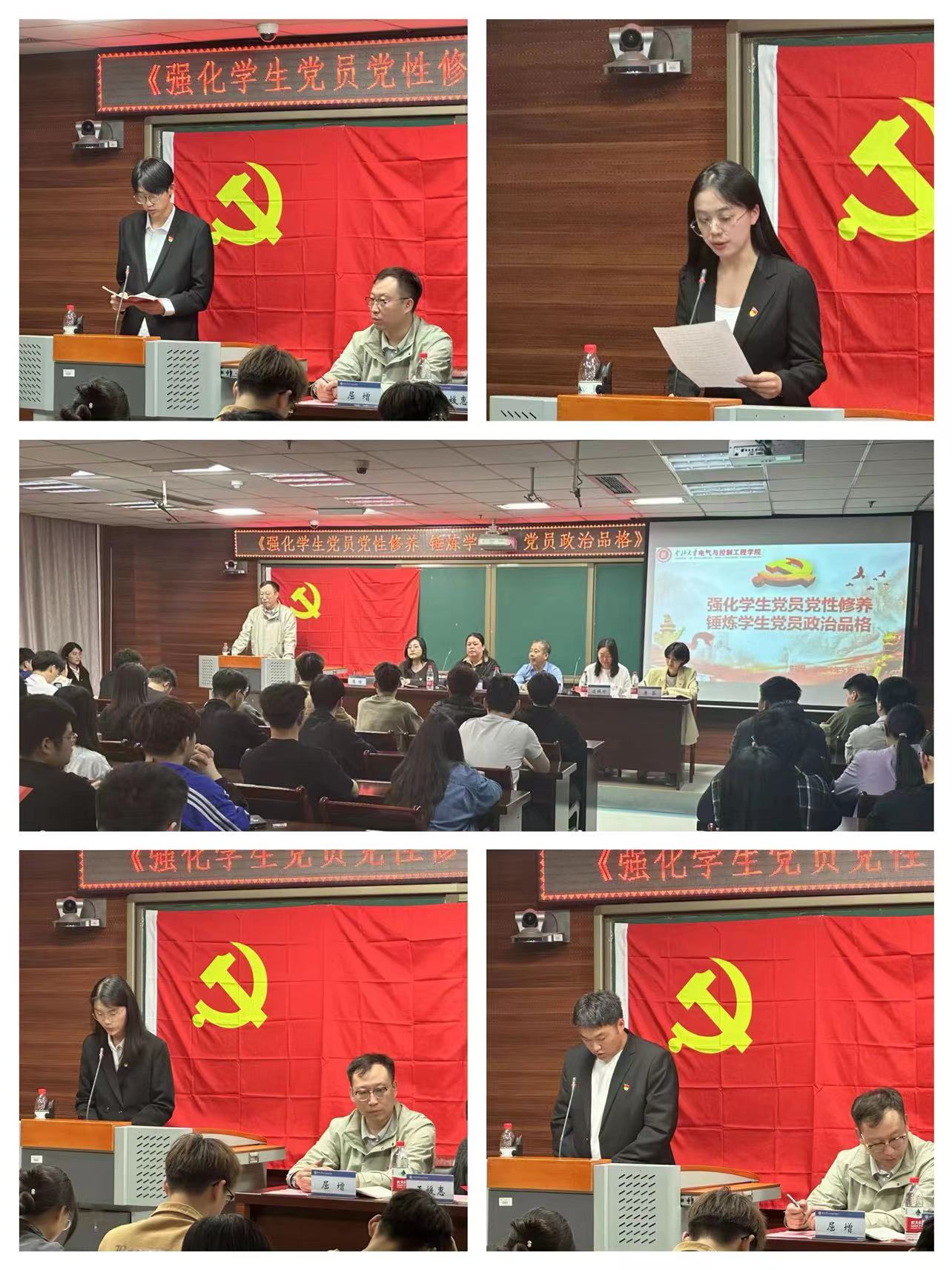 开展《强化学生党员党性修养 锤炼学生党员政治品格》党纪主题教育。院党委书记赵正杰同志、学生科科长薛艳霞同志、各本科生党支部书记及全体学生党员参加了会议。