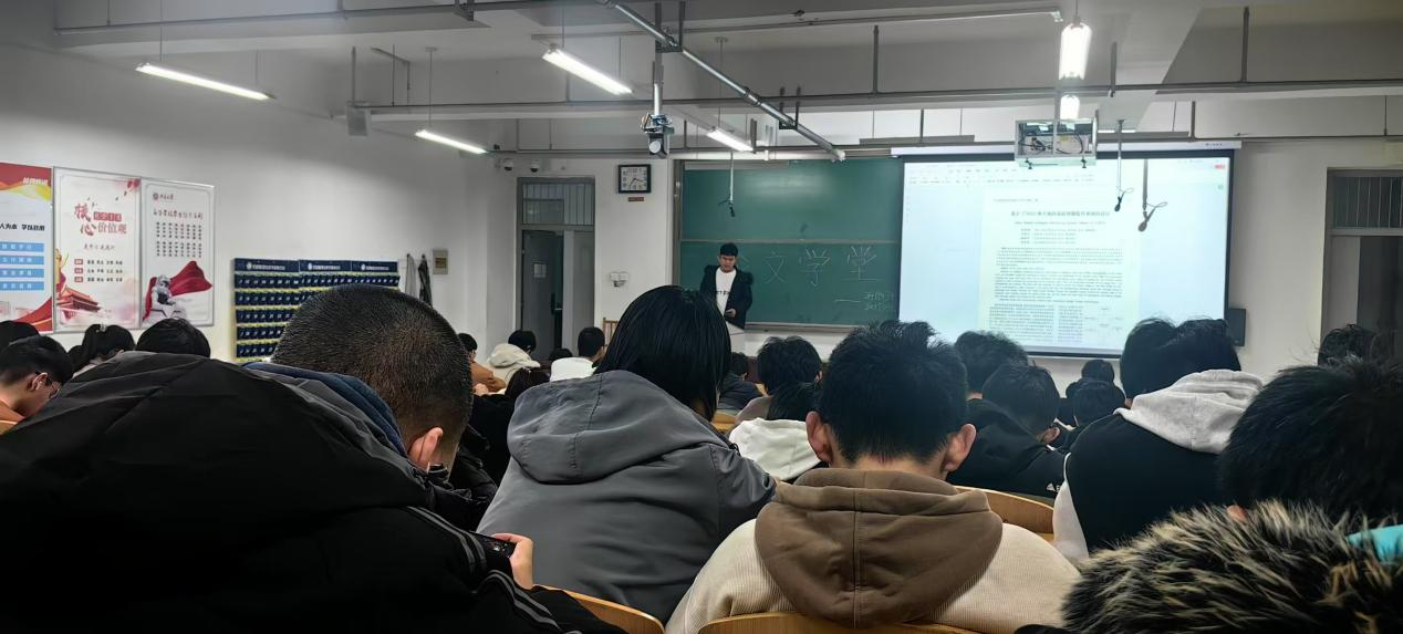 接着梁界琛的讲解更是让同学们收益匪浅,他分享了论文《基于STM32单片机的基站智能监控系统的设计》,通过本篇论文讲解了科研方面的有关问题,还有单片机的重要性,也强调了C语言基础。这与同学们将要学到的知识不一而同,激发了大家的学习热情。