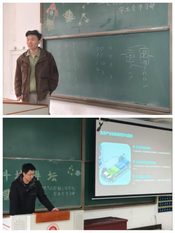 紧接着,曾俊堂同学为大家讲解了电气领域的前沿技术与未来展望。他结合当下炙手可热的新能源技术,深入浅出地分享了电气学科在新能源开发、智能电网建设、电力电子技术革新等方面的最新动态和发展方向。曾俊堂同学的讲解不仅让同学们对电气前沿技术有了更为清晰的认识,更激发了大家对专业学习的浓厚兴趣与热情。