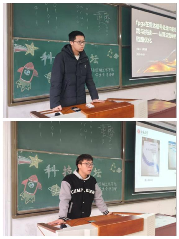 2025年3月8日上午,人妻av “一苇以航”辅导员工作室在15101H教室成功举办了第二十三期科技讲坛,本期讲坛邀请到了轨道创新实验室的薛万鑫同学和电子设计创新实验室的汪峰同学。
