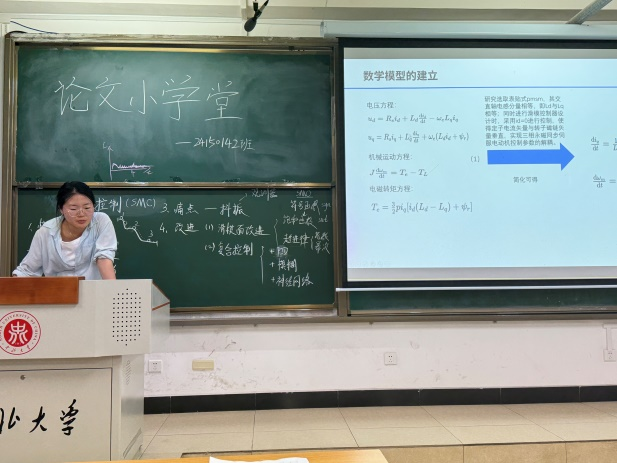 本次学堂开展了对《基于滑模控制器的永磁同步电机矢量控制的研究》论文的学习。本次论文学堂从多维度系统阐述了相关理论与方法。在研究背景与意义部分,指出了PMSM因其高效、紧凑的显著优势在新能源汽车、工业自动化等领域广泛应用,但传统PI控制在面对电机参数时变、负载突变等实际工况时,暴露了参数时变敏感性与外部扰动下的性能衰减问题,亟待更具有鲁棒性的控制策略;第二部分聚焦数学模型与控制算法设计,通过采用表贴式 PMSM 解耦模型,为滑模控制器的设计搭建了理论框架,比如通过引入二阶快速终端滑模面,不仅强化了系统在宽转速范围内的抗干扰能力,更实现了无超调的高精度转速跟踪,与论文中所提指数趋近律抑制抖振的设计思路形成理论呼应,共同推动滑模控制从基础理论向工程实用化迈进;在坐标变换与系统实现部分,Clarke-Park变换与空间矢量脉宽调制技术结合,构成了现代电机矢量控制的核心架构,前者通过数学解耦将三相耦合电流转换为独立的励磁分量与转矩分量,后者则通过优化电压矢量合成提升逆变器输出性能,二者共同支撑了滑模控制器在实际硬件系统中的高效实现,体现了理论模型与工程应用的深度衔接。