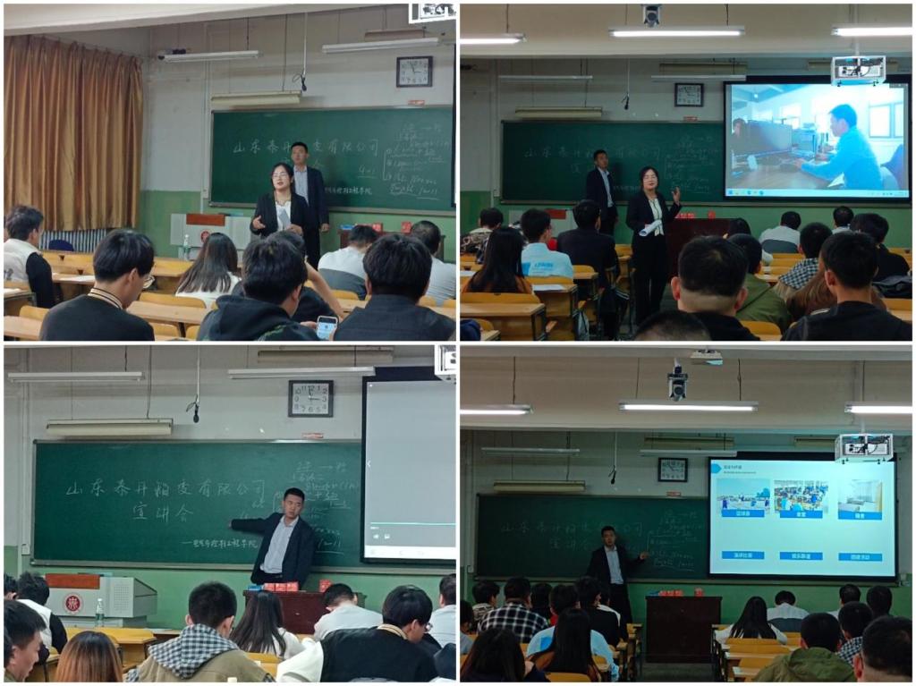 山东泰开箱变公司于10月26日14:30在01101H召开了宣讲会。会议主要介绍了公司的基本信息和对想要参加应聘的同学的一些要求。