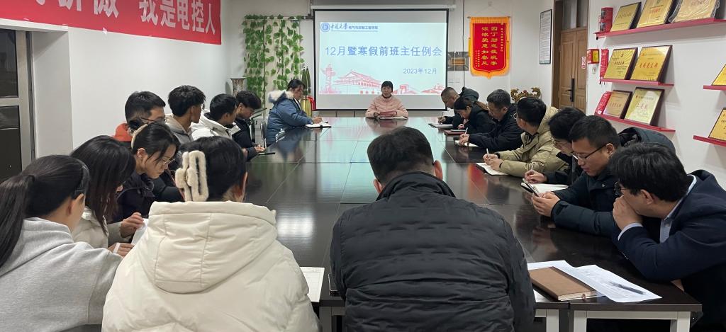 会议伊始,杜苇副书记根据学校相关会议和文件精神对重点工作进行了安排和部署。一是以主题班会为平台,持续面向全体学生开展学习习近平新时代中国特色社会主义思想主题教育活动,引导广大学生切身感受党的光辉业绩和伟大成就,坚定走中国特色社会主义道路的信念。二是根据学校文件精神,高度重视学生宿舍环境治理和文明宿舍创建,发动全院资源,积极排查宿舍隐患,整改问题,共建安全舒适生活环境、文明和谐宿舍氛围。三是切实做好元旦小长假、寒假前离校期间的学生管理工作,严格执行请销假制度,做好外出安全教育。全面掌握学生离校行程动态,确保学生底数清晰准确、离校和假期行程可追溯、返乡回家家校协同有反馈。四是紧密结合实际做好学生帮扶服务工作,加强考风考纪教育,重点关注学习困难学生群体、考研群体,采取有效帮扶措施,督促学生认真备考,诚信考试。五是扎实开展学生日常安全教育,加强学生离校前的安全管理,做好宿舍卫生、冬季防火、用电安全、防盗防骗、交通安全、网络文明和意识形态等教育,确保安全稳定。六是发挥榜样的引领示范作用,组织优秀班级和优秀学生宣讲团开展“优秀模范事迹分享报告会”,引导广大学生学榜样做榜样,营造积极向上、奋发进取的良好学习氛围。七是做好学期末学生心理健康教育工作、社会捐资奖学金评选等工作。