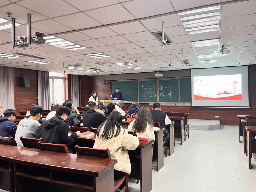 研究生第二党支部在主楼815室召开深入学习贯彻党的二十届三中全会精神会议。院党委统战委员张利平老师、研究生第二党支部书记董瀚萱老师、研究生二支部全体党员参加了大会,会议由院党委统战委员张利平老师主持。