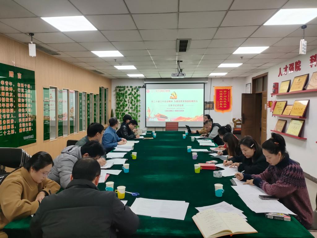 教职工第一党支部在主楼619召开支部大会,对“党的二十届三中全会精神”进行专题学习研讨。会议由支部书记薛艳霞作主题宣讲,全体支部党员参加会议。