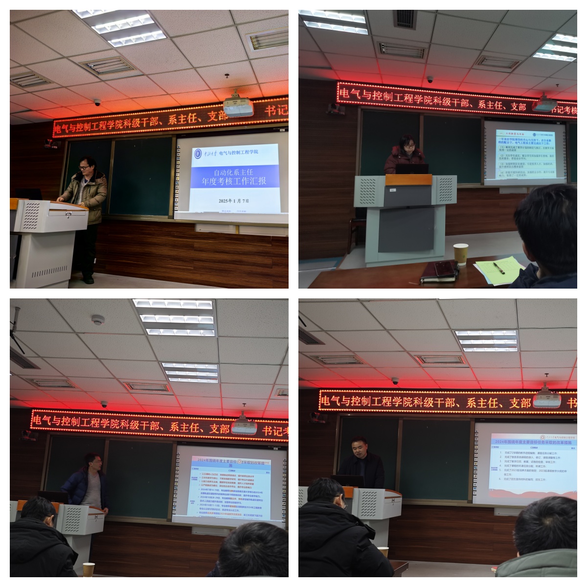 学院5个科室共6位科级干部分别围绕2024年度工作的完成情况、创新工作以及2025年提质增效计划进行了述职。自动化系、电气工程系、智能工程系、交通工程系的系主任依次围绕以本科教学位核心开展的教学研究、师资培训、双创竞赛、校企合作等方面进行汇报。在11位支部书记书面述职的基础上,抽取了教职工第一党支部、电气工程及其自动化专业学生党支部、自动化专业学生党支部、研究生第二党支部及第三党支部共5位党支部书记聚焦支部强基、“五结合”“五个一”特色党建、提质增效计划进行现场述职。现场的气氛向上而热烈。
