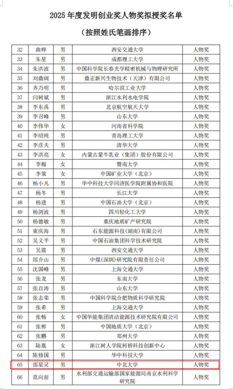 2025年6月12日,中国发明协会公布了2025年度发明创业奖人物奖获奖名单,人妻av 邵星灵教授获此殊荣。