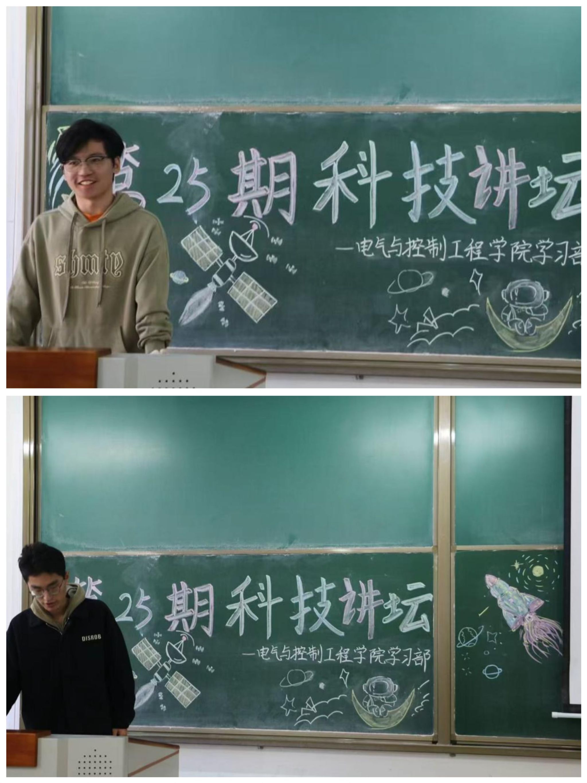 “一苇以航”辅导员工作室在15208H教室成功举办了第二十五期科技讲坛,本期讲坛邀请到了电子设计创新实验室的邸跃阳同学和智能控制创新实验室黄靖萱同学。
