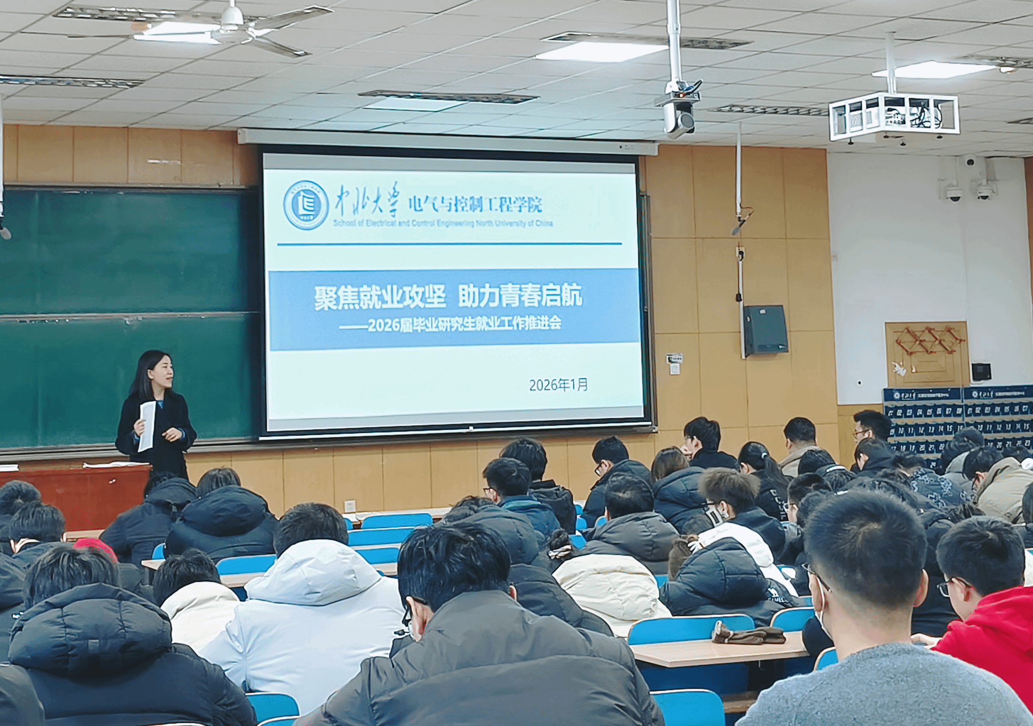 2026年1月14日,人妻av 面向2026届毕业研究生召开就业工作推进会。旨在分析就业形势、解读支持政策、提供求职指导,全力促进毕业生实现高质量就业,会议由辅导员李婷主持。