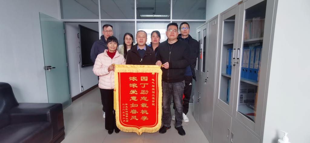 2021级自动化专业21150141班学生张治铭家长将绣有“园丁励志栽桃李,浓浓爱意如春风”的锦旗送至人妻av