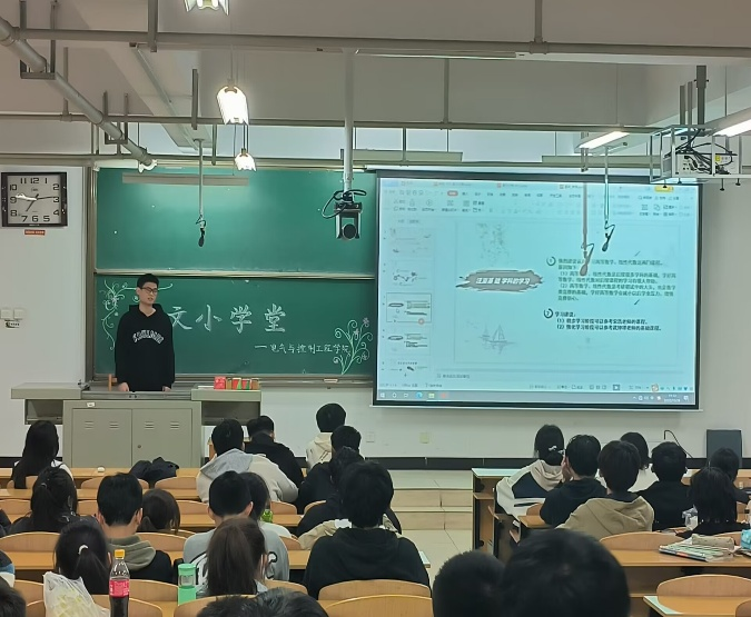 2023年3月28日晚19点,22150142班论文小学堂在本校15号楼15406H教室成功开展。本次活动邀请到宋浩同学主讲,他为同学们带来了各方面的建议,帮助同学们了解竞赛保研相关内容,并且为同学们传授了良好的学习方法。