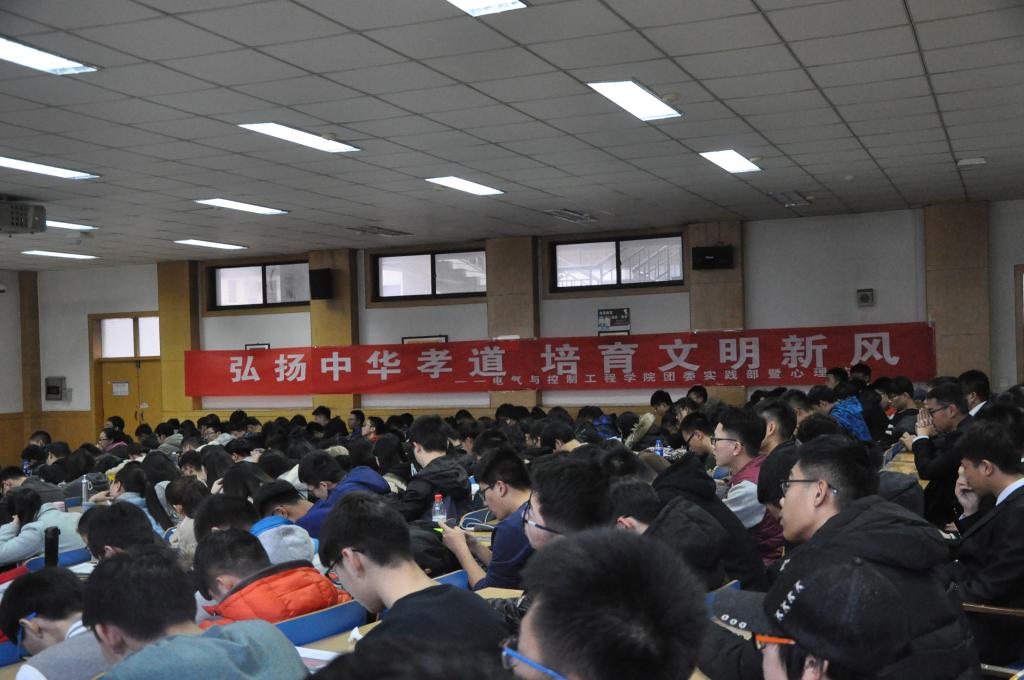 于2017年12月1日下午四点在主楼11408H教室隆重举行以“儒家的孝道”为主题的知行讲坛。本次讲坛我们有幸邀请到了中国人民大学哲学院博士、太原科技大学哲学研究所所长——毛建儒教授来为我们普及儒家的孝道。大会得到了同学们的高度重视,会场座无虚席。