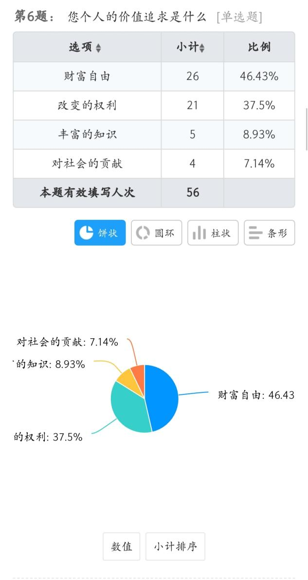 由于社会竞争日趋激烈,由此衍生出来的越来越看重个人的价值这从第二题中的关于价值追求前3位就可以看出来,不管好坏与否这种趋势在本次调查中表现得很明显。同时也显示出大学生开始倾心于注重实用、追求成功的价值观念,这显然与传统的重义轻利、默默奉献的价值观形成冲突。