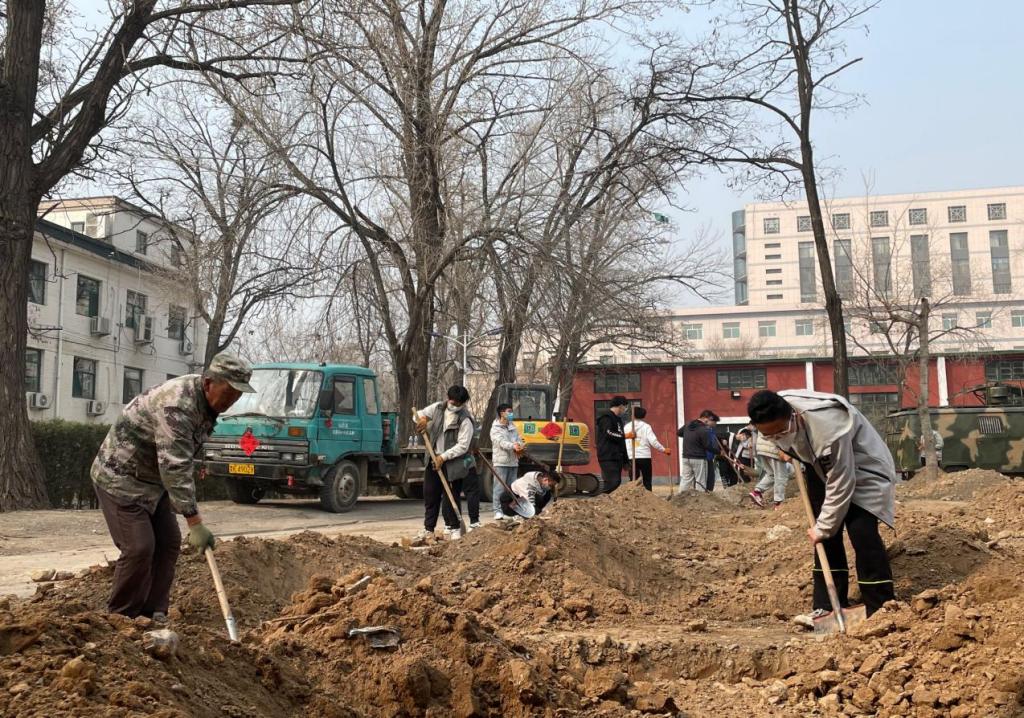 校园绿化中心主任从活动目的及意义、安全防范、疫情防控措施等方面为同学们进行了详细的部署。随后30名志愿者分成5组,开始了志愿活动,大家的主要任务是清理土壤中的乱石及杂物,将土地平整、松软,为后续植树做好准备。虽素未接触此类活动,但志愿者们热情澎湃,积极工作,大家两两合作,齐心协力,配合默契,经过近3个小时的努力,平整工作完成。活动也在大家喊出的“春来添新绿,奋斗正当时”的口号声中圆满结束。