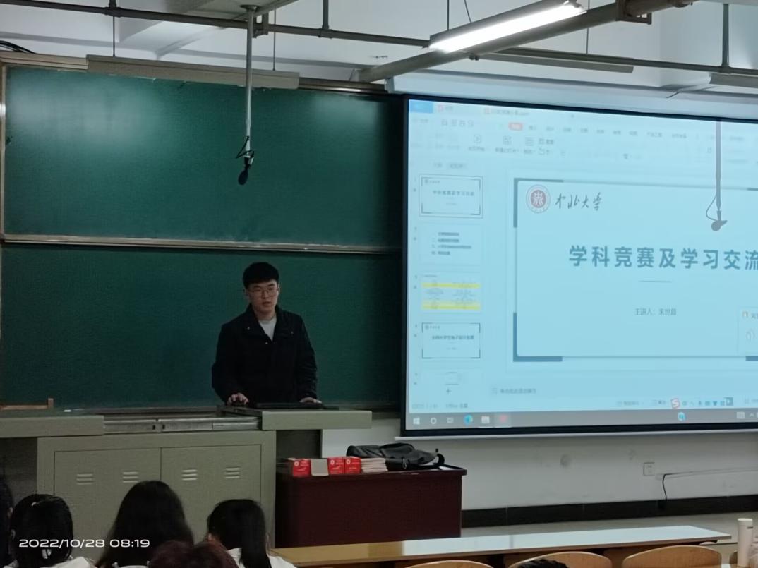 随后,朱世昌学长为同学们详细介绍了各类竞赛的举办时间、比赛安排,推荐了需要的软件与学习资料,讲述了各类竞赛需具备的能力,最后带同学们了解往年竞赛真题,为同学们揭开竞赛的神秘面纱。