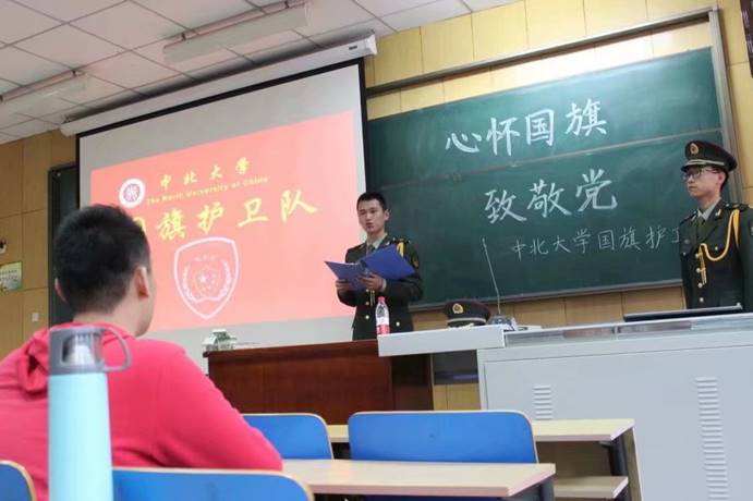 国旗护卫队主办的“心怀国旗致敬党”的爱国主义宣讲会在11309H教室顺利召开。与会团体有17030143, 17030141,17150242, 18150343,太行精神协会,国旗护卫队预备队员。