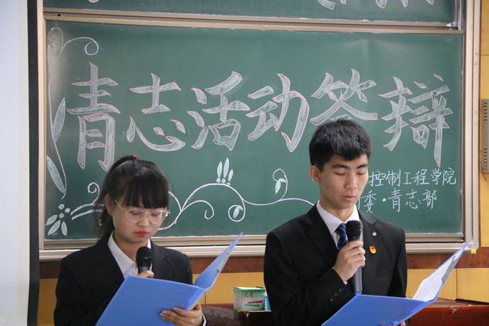 随着主持人昂扬的话语,大会正式开始,九个班的代表分别上台为大家展示了本班的青志活动的过程与成果并带来了他们准备的节目。