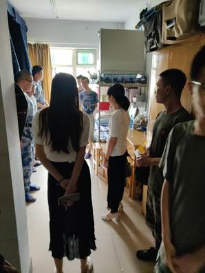 走访过程中,党委副书记杜苇仔细查看每个寝室,对宿舍用电、内务状态提出建议,并与学生们亲切交流,指导同学们合理规划宿舍,强调杜绝使用违规电器,谨防电器火灾,并要求大家保持寝室卫生干净整洁,物件摆放齐整,营造良好的寝室生活氛围。