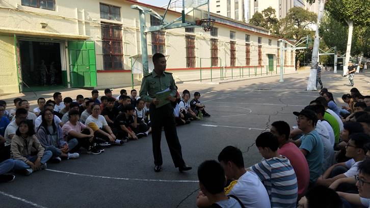 于旧篮球场开展了2019级新生军训教官见面会,出席此次见面会的有全体军训教官、新生班辅导员以及19级全体新生。
