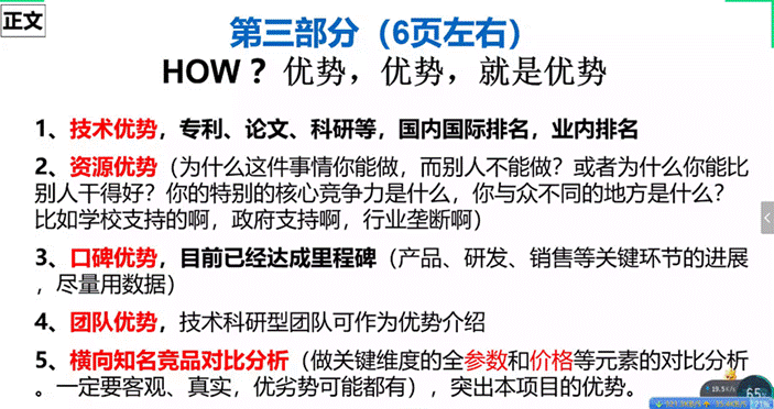之后便是对PPT的讲解,陈昌鑫老师精炼一句话便是说清楚你要做什么,重点强调了你的项目能解决什么样的痛点问题,并且PPT不要全是文字,最好配上示意图以及流程图让人一目了然。接着便是强调自己的优势,例如技术优势,资源优势,口碑优势,团队优势等等。
