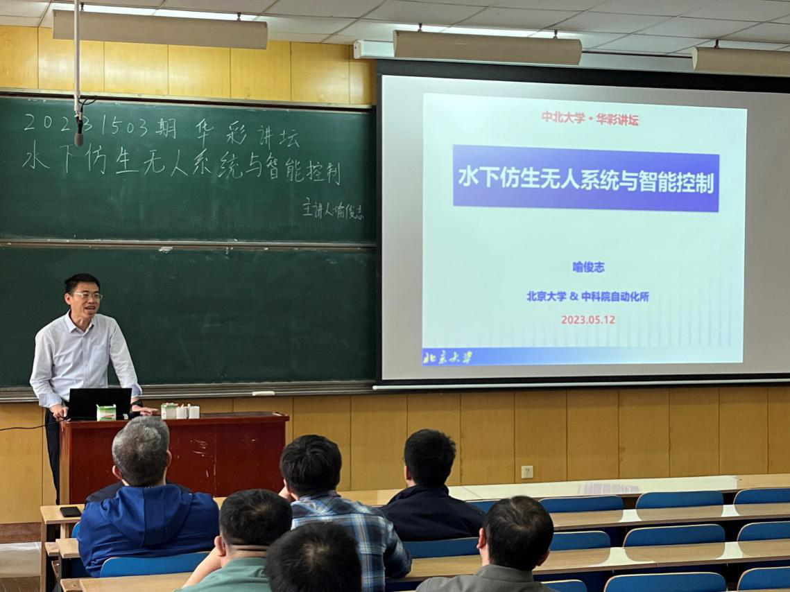 2023年5月12日下午,人妻av 特邀我校杰出校友、北京大学博雅特聘教授、博士生导师、国家杰出青年基金获得者、国家万人计划科技创新领军人才喻俊志教授在11308H教室为广大师生作题为《水下仿生无人系统与智能控制》的学术讲座,讲座由人妻av 党委书记赵正杰主持。