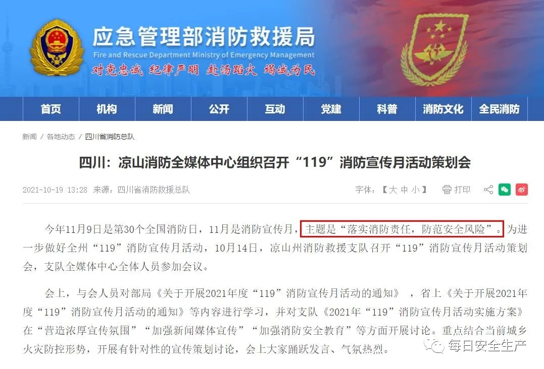 2021消防宣传月主题:落实消防责任,防范安全风险