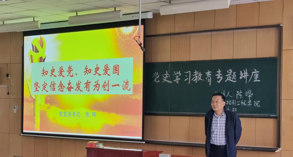 在11209H教室举办研究生党史学习教育专题讲座,主讲人为学院党委书记陈晔老师,讲座由研究生辅导员李婷老师主持,全体研究生参加。
