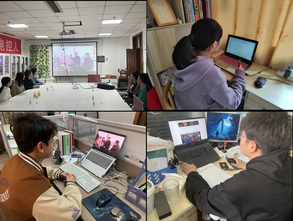 老师和同学们通过回顾习近平总书记春节前夕顶风冒雪考察调研山西实景,体会习近平总书记对于山西的殷切关怀以及“我将无我,不负人民”的精神境界;通过学习习近平总书记考察调研山西重要指示精神的实质和内涵,感悟党的创新理论的真理力量和实践力量,汲取建设家乡、建设祖国的不竭动力。