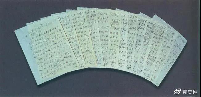 图为周恩来为万隆会议临时赶写的补充发言草稿。其中提出了著名的“求同存异”的方针。